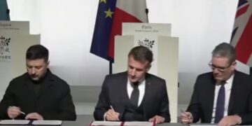 Свет (ВИДЕО) Макрон, Стармер и Зеленски потпишаа декларација за можна мултинационална воена мисија во Украина 06.01.2026